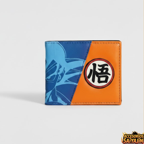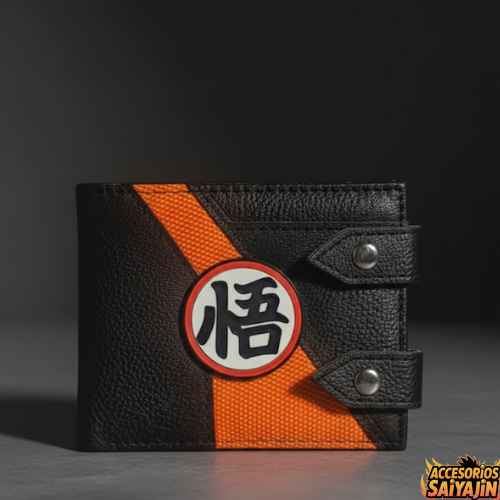 Está fabricada con cuero sintético de alta calidad y detalles en lona resistente, lo que garantiza durabilidad, textura premium y un acabado inspirado en el uniforme de Goku.